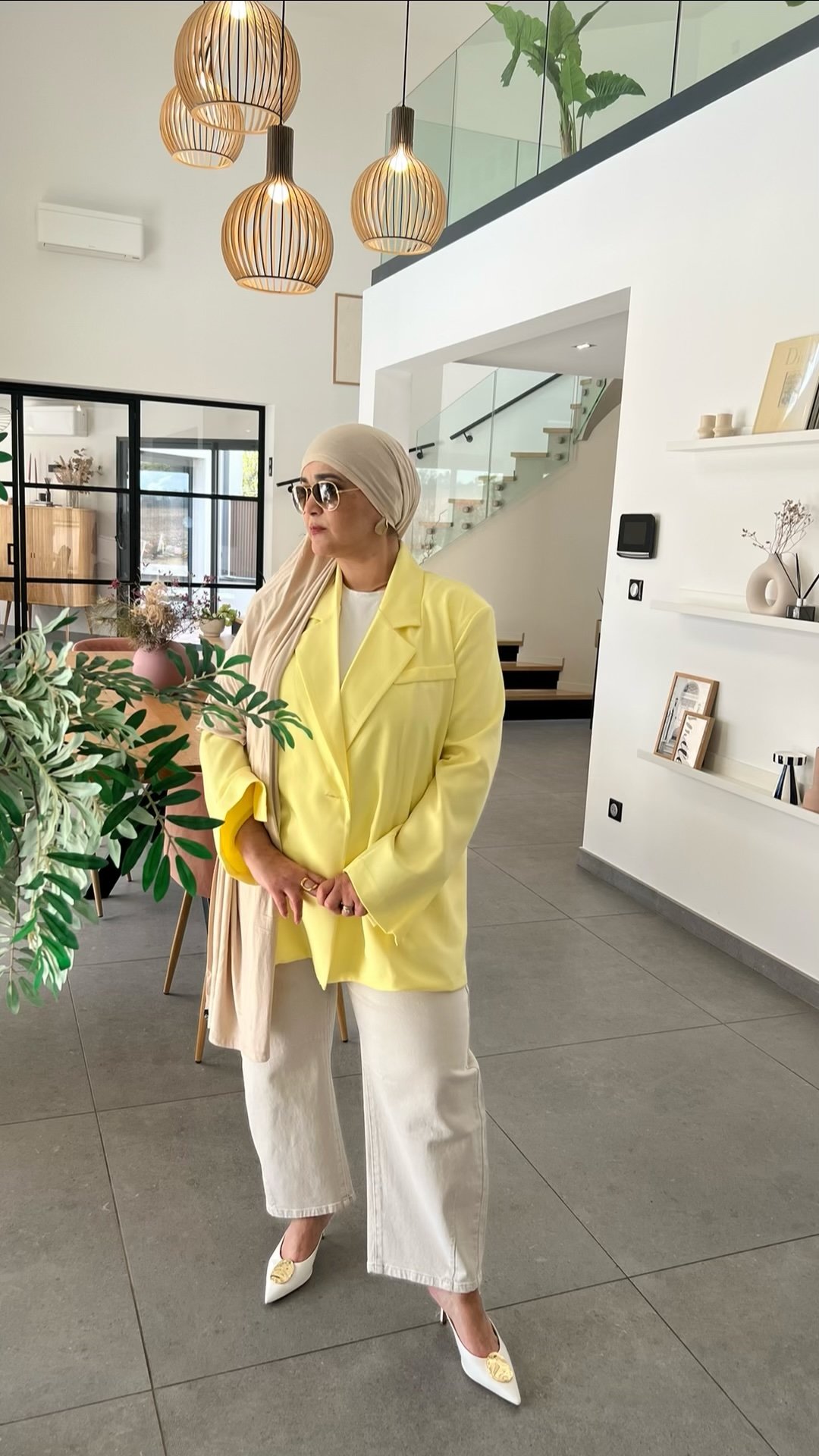 Pour porter le blazer ouvert : taille pouvant aller jusqu’à un 44/46