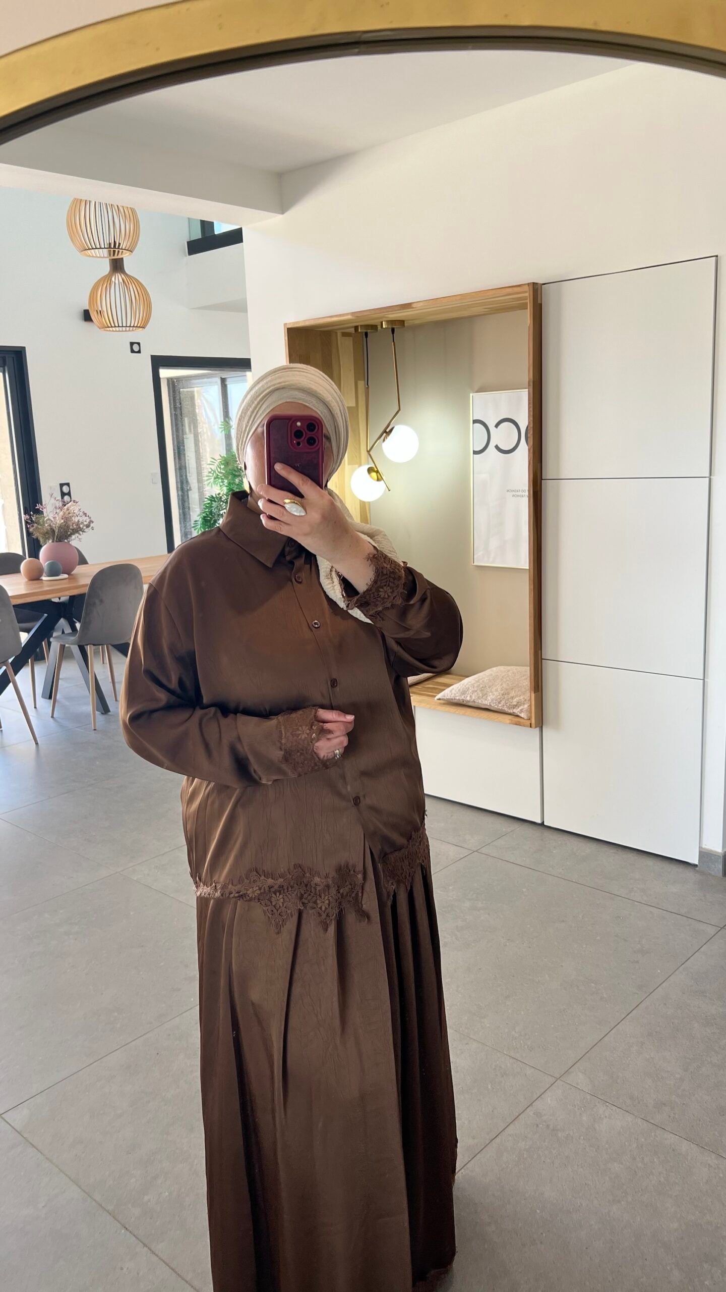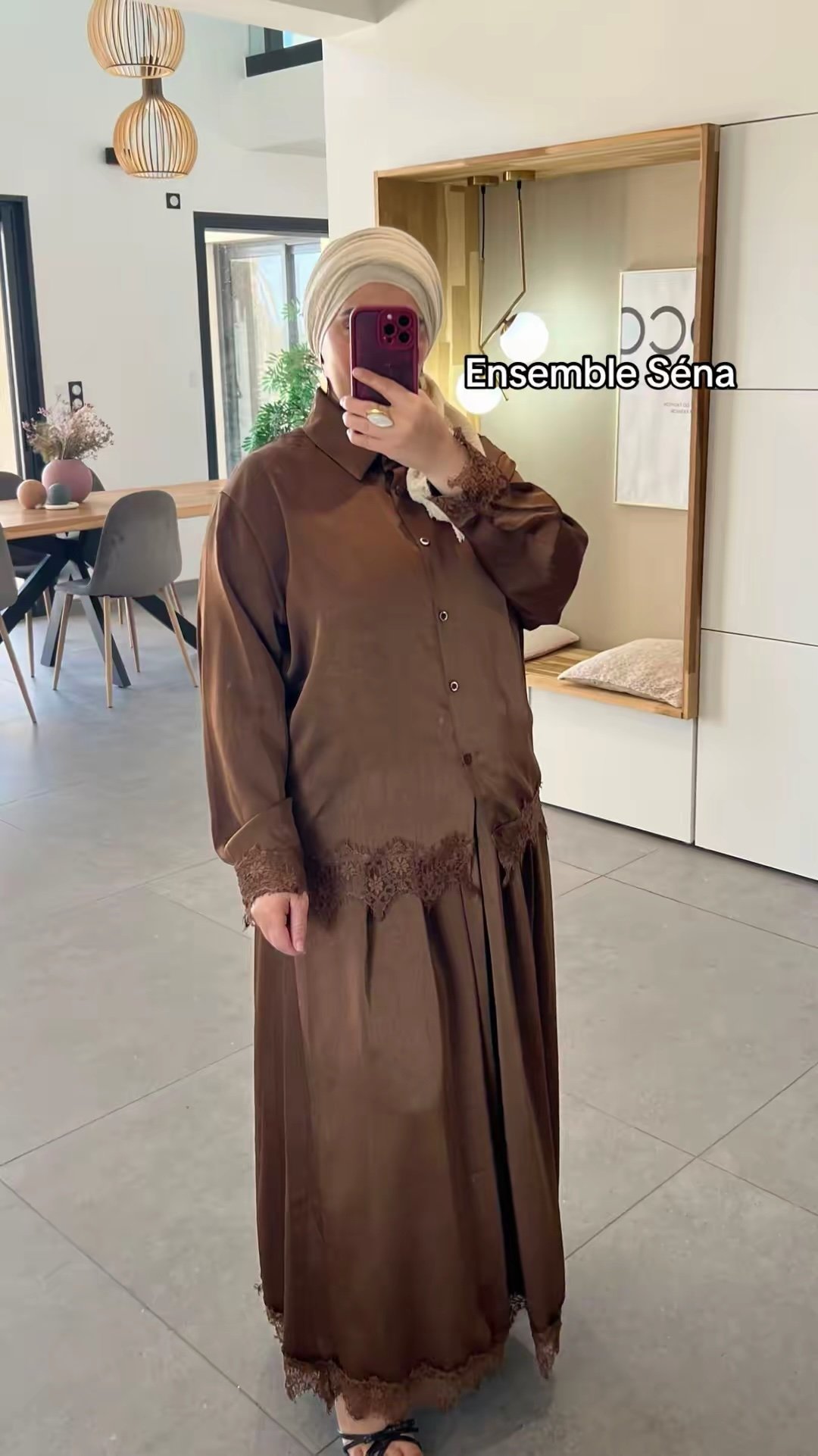 Ensemble composé d’une jupe et d’une chemise finition avec dentelle