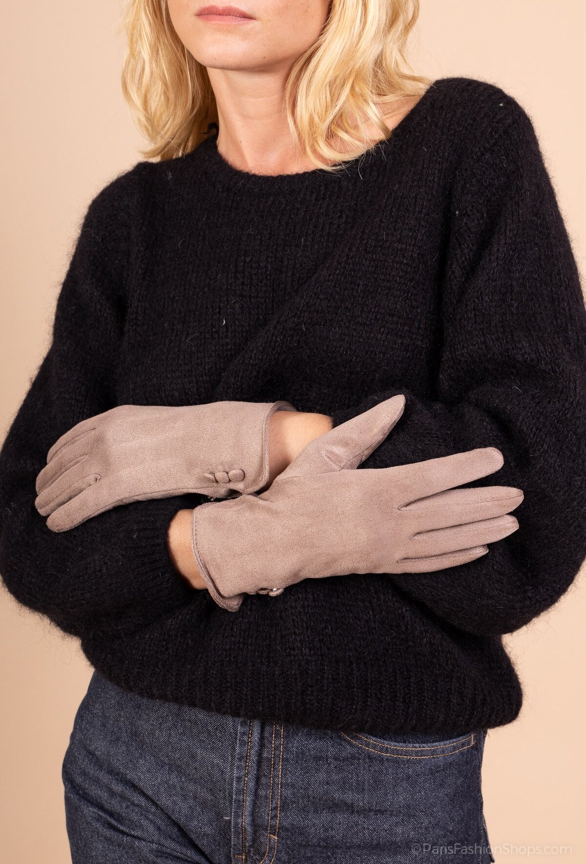 Gant élégant stretch, bouton décoratif