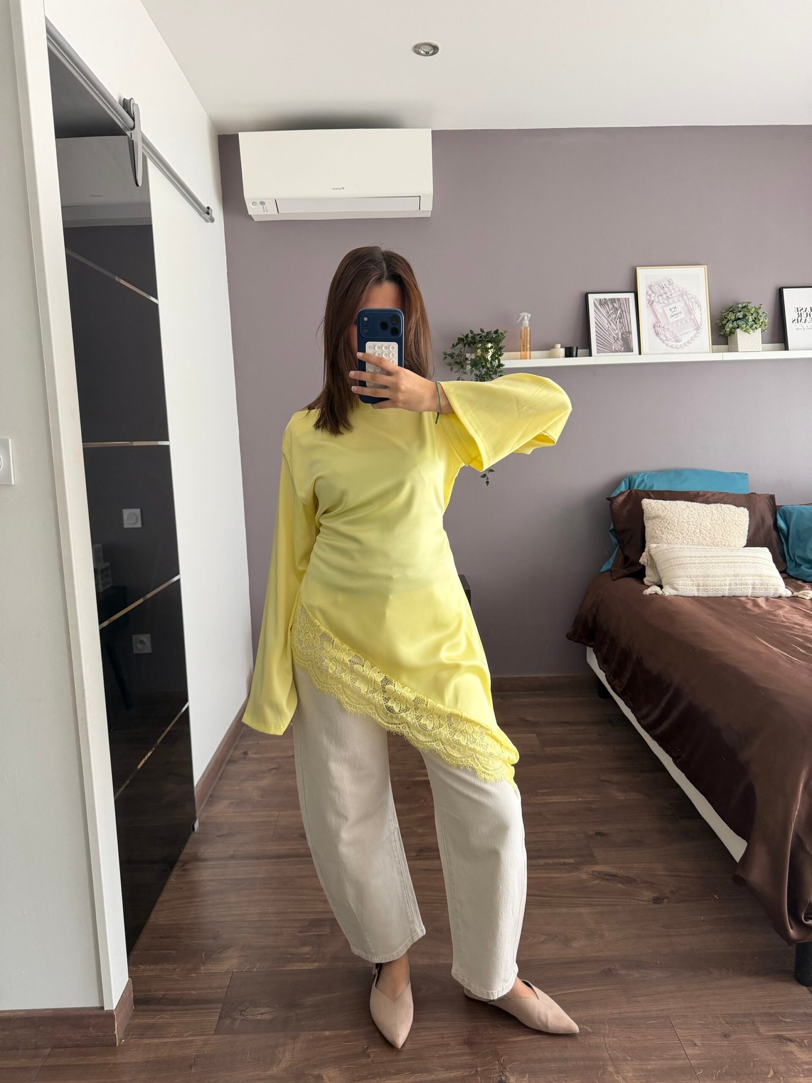 LE MANNEQUIN MESURE 1,58M ET PORTE UNE TAILLE DE 44