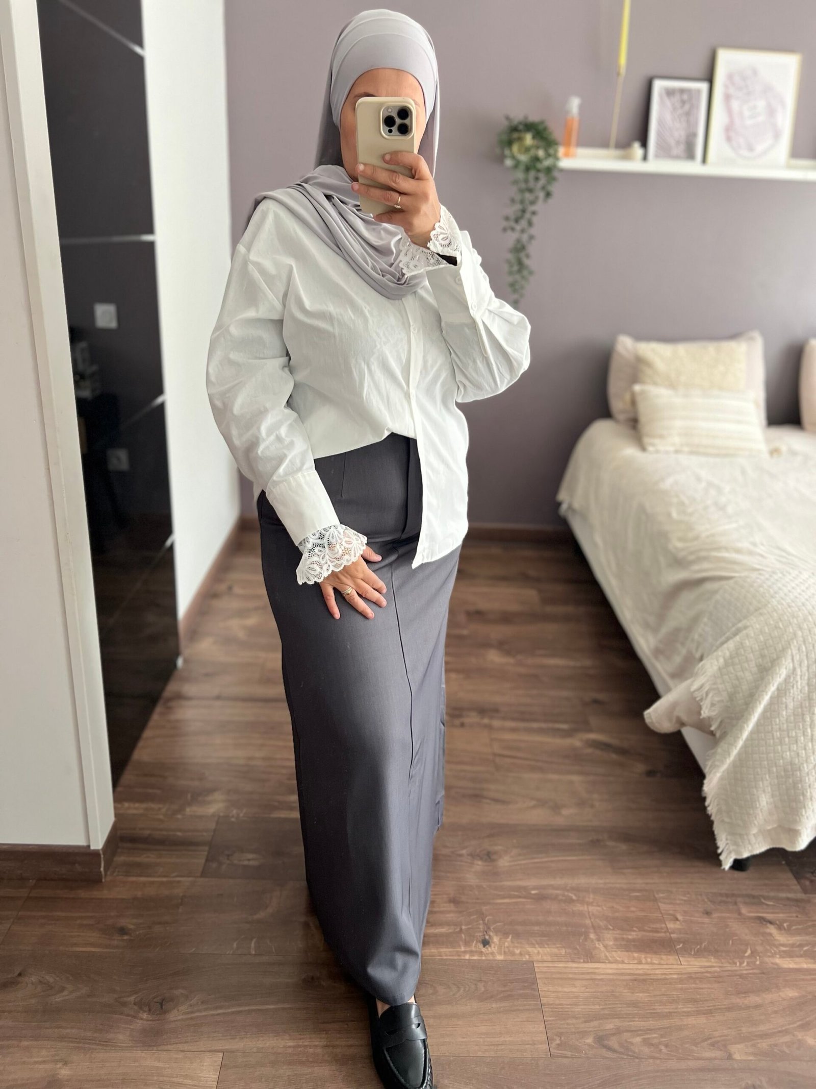 Le mannequin mesure 162 cm et porte habituellement une taille 40